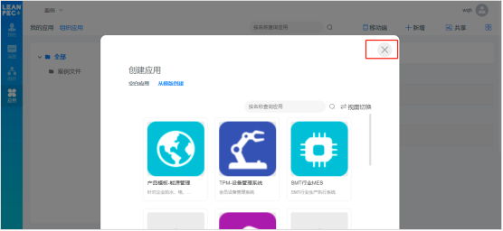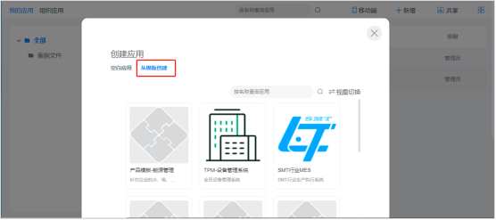 (2)从模板创建 从模板创建,会显示目前所展示的模板。可按名称搜索进行选择所需模板,点击创建即可完成创建当前的模板。