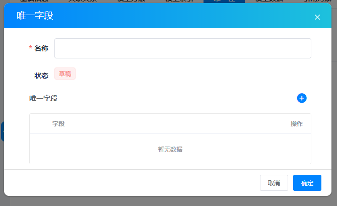 点击右上角“”按钮,会弹出弹框“唯一性”新增页面
