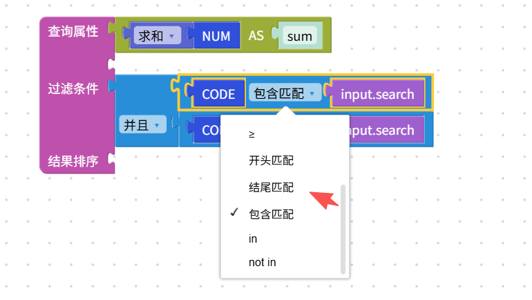 2.模型方法“like”条件更新为,中文描述“匹配”。